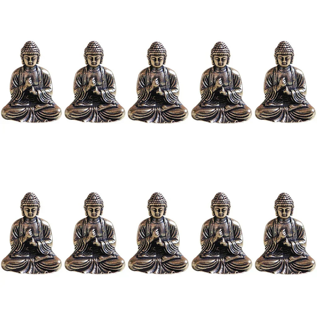 Junips | 10 pieces mini brass sitting Buddha statue figure for travel Buddhism worship home office desk decoration